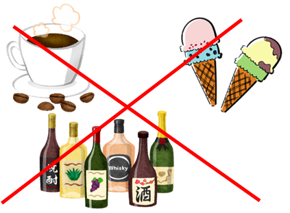 香辛料などの刺激物やコーヒー、アルコール類、炭酸飲料、冷たすぎる物は腸を刺激し下痢を誘発させることがあるため、控えましょう。