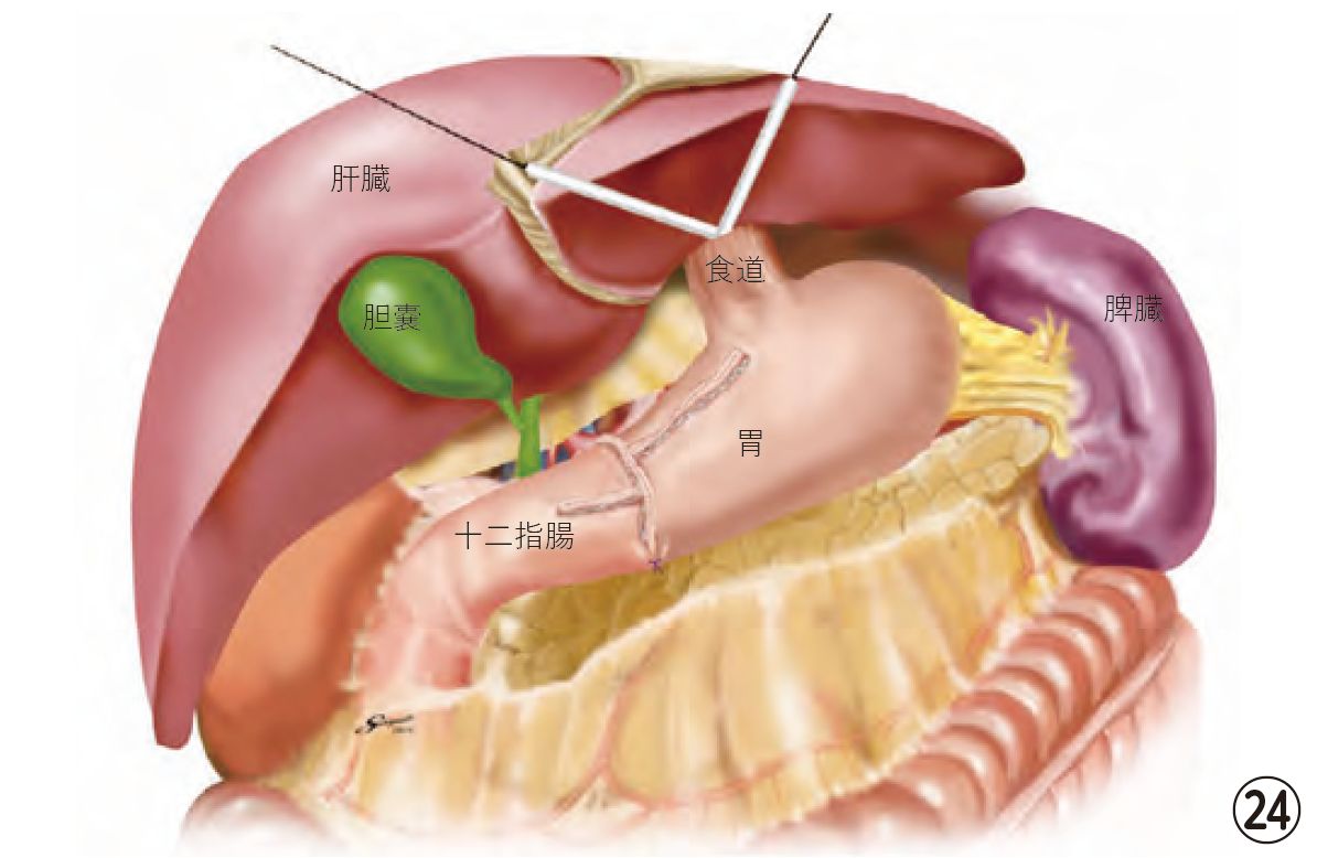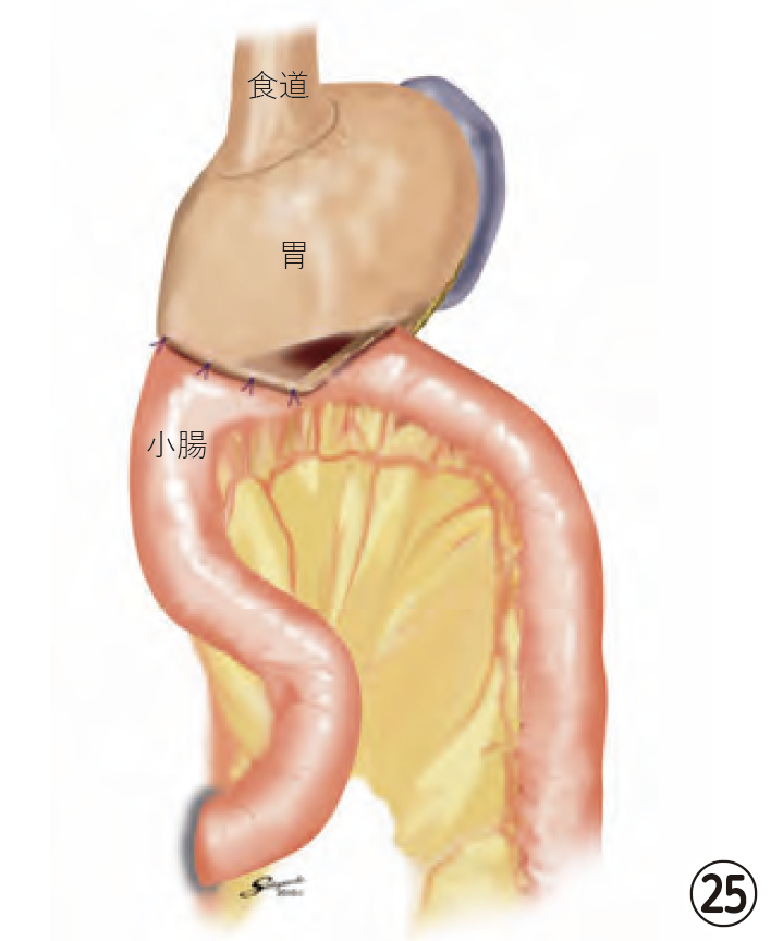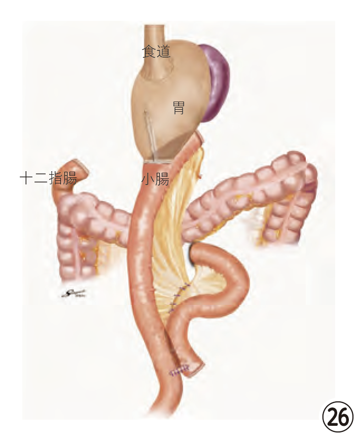 残った胃の大きさによって十二指腸と胃をつなぐ場合(㉔)と小腸と胃をつなぐ場合(㉕㉖)があります。